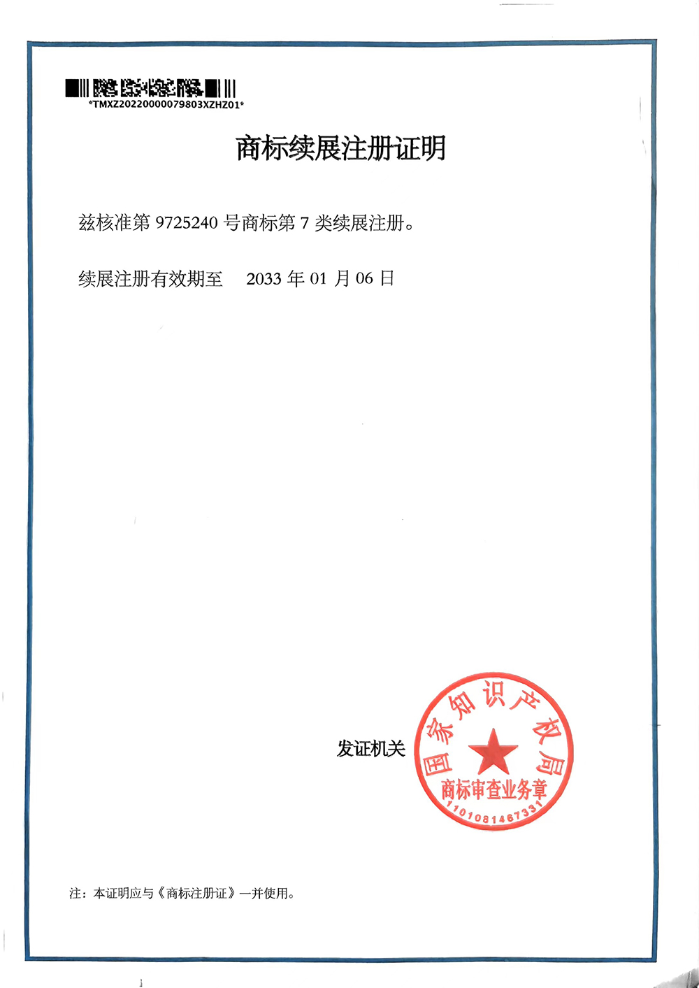 商標續(xù)展注冊證明